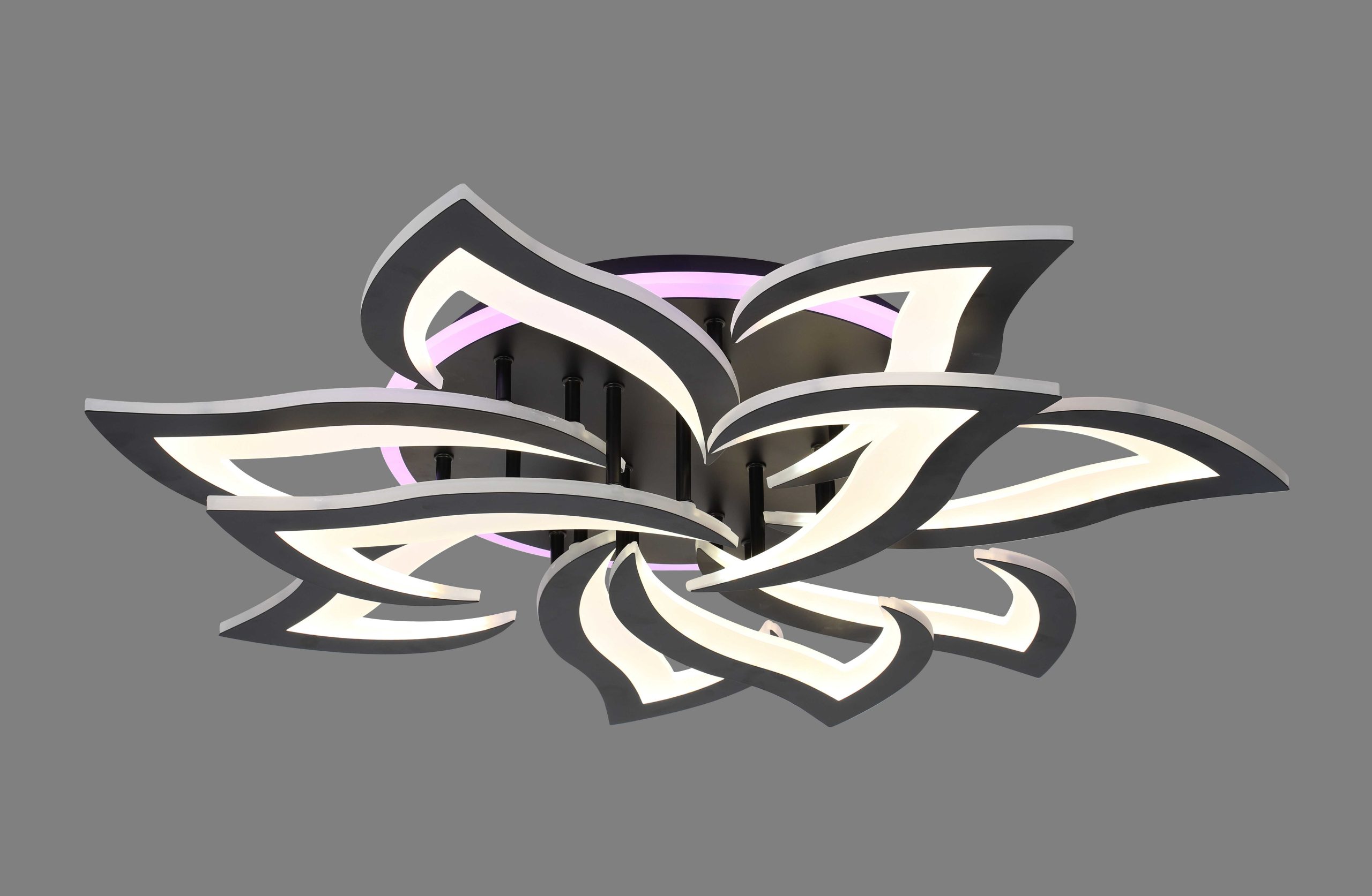 Цвет BK+RGB Количество ламп 10 Размер L850 x W850 x H130 Тип лампы светодиодная Мощность 180W 3500-6500K Пульт Да Основание металл